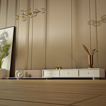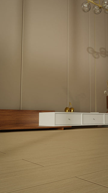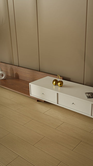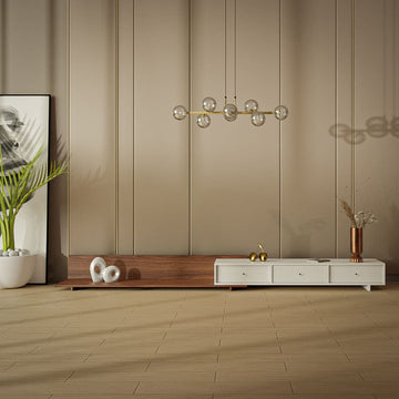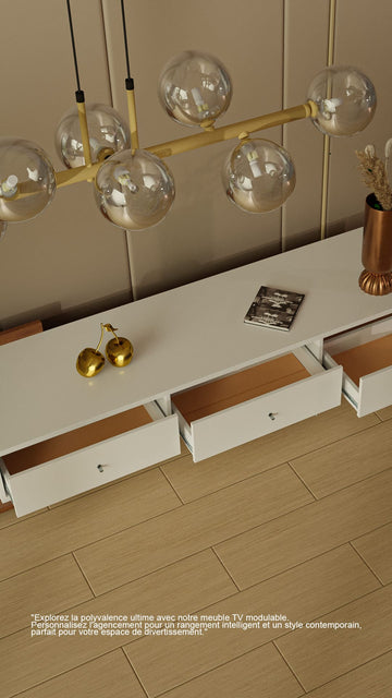 Le meuble TV VOLUTES allie élégance et fonctionnalité. Avec son design rétractable en noyer et blanc, il s'intègre parfaitement dans divers styles de salons. Son dessus de table extensible crée un espace de rangement supplémentaire tandis que les 3 tiroirs offrent une solution de rangement pratique pour vos articles essentiels. Solide et esthétique, le meuble TV VOLUTES est idéal pour un espace de divertissement sophistiqué..